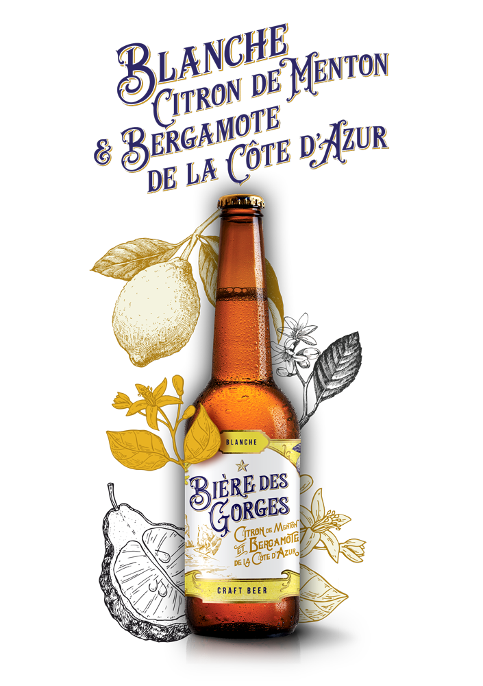 A Menton au bord de la mer méditerranée, sur les coteaux abrupts de la Riviera Française, poussent des agrumes que nous avons associé pour créer cette bière blanche cueillis à pleine maturité, jaunes, gorgés de soleil. Le citron de Menton a un goût plus doux, des arômes plus intenses et une acidité modérée.